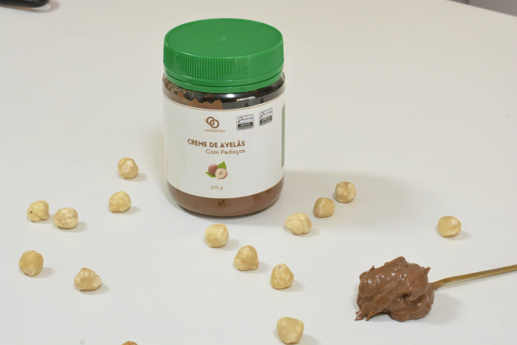 Ingredientes: açúcar, leite em pó desnatado, óleo de girassol, pasta de avelã tostada, óleo de palma fracionado, cacau em pó, óleo de coco, emulsificante (INS322) e aromatizante sintético idêntico ao natural. Conservar em local seco, em temperatura máxima de 20 °C.